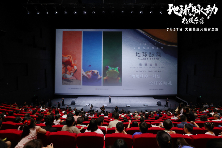 7月22日「给地球的一封信」全球首映礼,BBC Studios亚洲区高级副总裁兼总经理Phil Hardman与BBC Studios大中华区高级副总裁兼总经理丁可作为出品方代表,以及中国电影股份有限公司总经理助理、中国电影股份有限公司北京电影发行分公司经理、中影数字电影发展(北京)有限公司经理张大勇作为发行方代表共同亮相,以能显现片名的流沙装置作为揭晓仪式,与现场数百名观众共同见证首映礼的圆满成功,引现场掌声雷动。