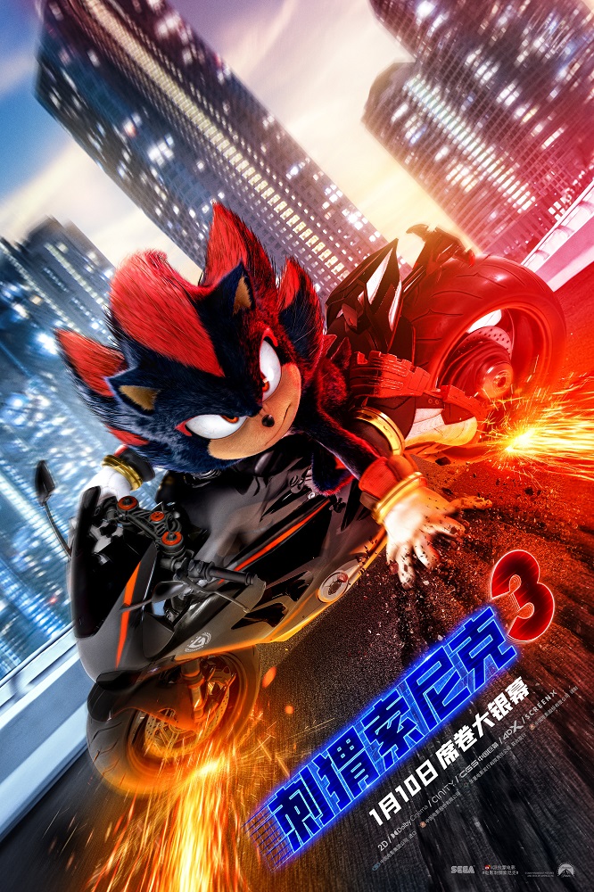 影片同时发布“东京漂移”海报,夏特以身骑摩托的炫酷造型闪现东京街头,强劲有力的手与地面摩擦出四道深深的漂移痕迹,黑红造型与那坚定的眼神都彰显了夏特这一角色带来的超绝力量感与强大气场。影片此次还将在东京街头上演惊险刺激的极速狂飙,由音速小子索尼克在车流中穿梭追逐骑着摩托的夏特,全程高能冲击力十足,特效升级打斗丝滑流畅,堪称“刺猬版的速度与激情”。《刺猬索尼克3》已于12月20日在北美公映,不仅海外知名影评网站烂番茄爆米花指数高达98%,位居《刺猬索尼克》电影系列最佳,本土开画更是以6200万美元位列周末票房冠军,口碑大爆叫好又叫座!不少观众看过后纷纷表示:“狠狠被《刺猬索尼克3》惊艳到了,建议所有人都去看”、“太好看了还想要二刷”、“是电影系列的巅峰之作”、“金·凯瑞的一举一动都让我笑得前仰后合”、“已经开始期待《刺猬索尼克4》”、“夏特和蛋头博士的表现实在太过精彩”……口碑合家欢开年炸场,1月10日来看《刺猬索尼克3》!