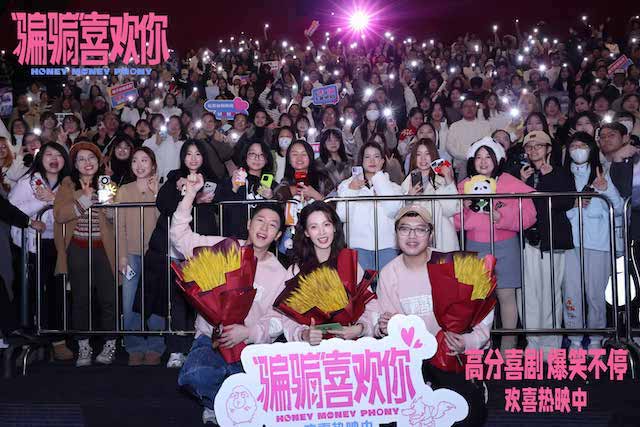 成都站的路演恰逢影片在豆瓣平台开分,作为2025年开年第一部喜剧爱情电影,《“骗骗”喜欢你》获得了7.2分的好成绩,导演苏彪有感而发:“感谢观众对于我们的认可,希望电影能让大家快乐。”在轻松自在的氛围下,金晨和孙阳承诺会在票房破2亿时合跳双人舞。路演现场,孙阳穿上观众带来的“四川省省服”——红色围裙与金晨一起再现电影主题曲MV《爱情的骗子我问你2025》中“降虾十八舞”,魔性的“公虾米”让氛围瞬间活跃起来。对于这样一部给影迷带来精神食粮的喜剧电影,有观众给予了高度的评价:“电影在搞笑之外还有感动,不刻意煽情,而是潜移默化地走进大家心里。”每个观影的人,都能在这114分钟里,沉浸式感受欢乐,体会温情。