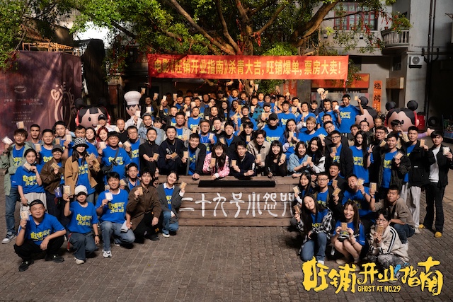 同步发布的首支预告以快节奏剪辑,率先展示了影片悬疑惊悚喜剧的类型。预告开篇店长白央(吴磊饰)租下了地段好、价格低,除了“闹鬼”没有其他问题的凶宅,作为自己甜品店的创业起点,但走进这座凶宅众人纷纷被吓得大气都不敢喘。为了破除霉运,店长白央找到老道(张子贤饰)求助:“我以后是老板还是老赖,全看你的了!”一场盛大热闹的开业仪式就此开启:在一声声“破”中,老道韩沙一顿操作后迎来吉时,何剑(王皓饰)和宋楠师(李嘉琦饰)直接扮成 “童男童女” 发放传单,画面反差感十足笑料拉满。而老对头古糖水店长(潘斌龙 饰)则在一旁别有用心地看着即将开业的甜品店。别人家开店舞龙舞狮,“29号小怨咒”甜品店开业则举行了一场别开生面的驱霉运仪式。预告最后,这场画风清奇的开业仪式被打断,刚刚送走霉运的白央接下来又要面对一堆未知的挑战,期待这场惊吓与笑料齐飞的凶宅创业之旅。