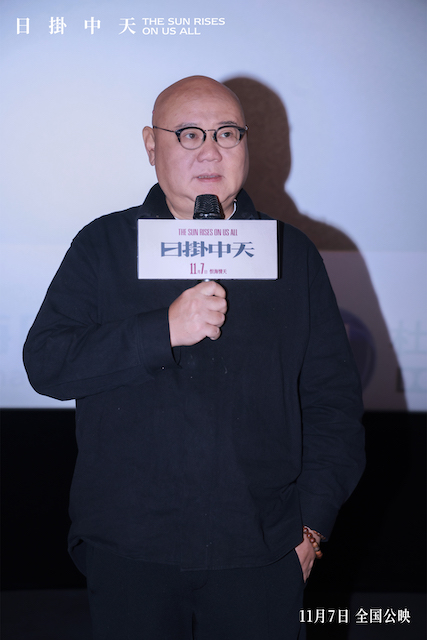 电影《日掛中天》的故事起始于一次意料之外的重逢,带出角色的道德灰暗面与情感困境,他们在人生的十字关口面临着的罪与罚的混沌,在阳光普照下,努力地走出熠熠生辉的救赎之路。路演现场许多观众提到“很喜欢片名,人生的残酷与人性的灰度在耀眼的阳光下无处遁形。”蔡尚君导演解释到:“片名带着对美好前路的一种憧憬和预示,就像片中许多上楼梯和奔跑的戏,带着向上的希望”,“关于影片也许每个人会有不同的感受,但角色最后得到了心灵的慰藉与解脱,也希望观众从中获得积极的力量。”