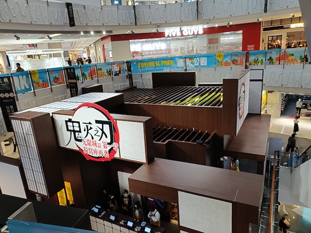 除了丰富的商品,本次快闪店在体验设计上亦颇具匠心。在北京、上海、深圳、成都这四个核心城市,活动现场不仅设有零售区,更设置了精心设计的打卡区。打卡区以作品中核心战场“无限城”为蓝本设计,还原那座错综复杂且极具特色的建筑,部分商场更“变身”鬼灭之刃IP的专属“痛楼”。为粉丝提供仿佛置身于剧情之中的沉浸感,供粉丝们打卡出片,进一步助推活动的线上传播。