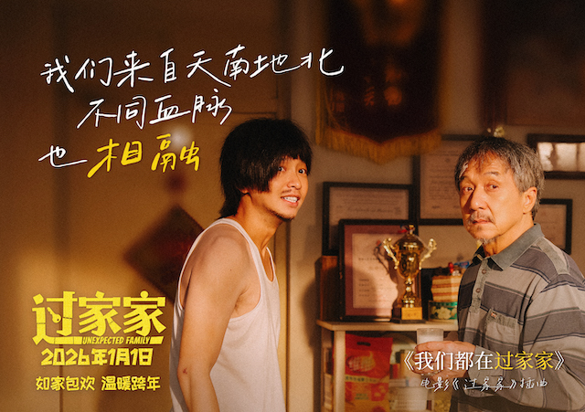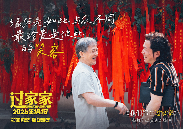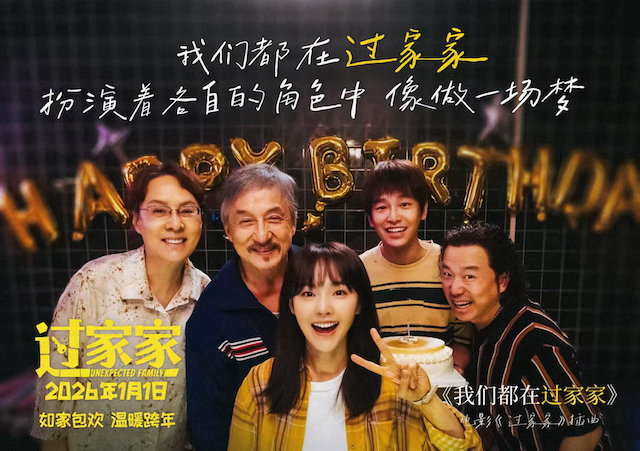 将于元旦上映的《过家家》集结了成龙、彭昱畅、张佳宁、潘斌龙、李萍等一众实力演员。他们以真挚动人的演绎,呈现了一个虽无血缘却紧紧相连的“家”。正如插曲《我们都在过家家》中所唱道的那样:“我们来自天南地北,不同血脉也相融。”这部电影愿用温暖陪伴每一个家庭,共同跨越这个独特而美好的新年。