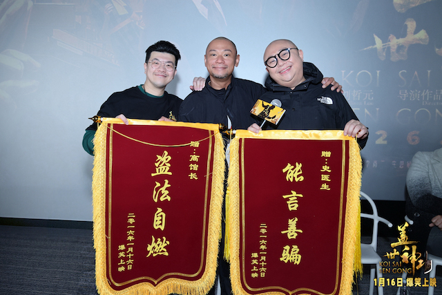 观众们不仅对影片的无厘头笑点表示高度认可,更对主创团队的真诚与投入赞不绝口。监制林敏骢“傻得真诚”的创作理念、罗家英“想打导演却演得过瘾”的幕后趣事、钟骏儿的转型突破、以及金刚与BOB现场获赠搞笑锦旗等高能场面,都成为观众津津乐道的路演亮点,营造了极强的仪式感和欢乐共鸣,路演现场的笑声与好评不断,被众多网友标记为“2026年开年必看的第一部欢乐大片”。