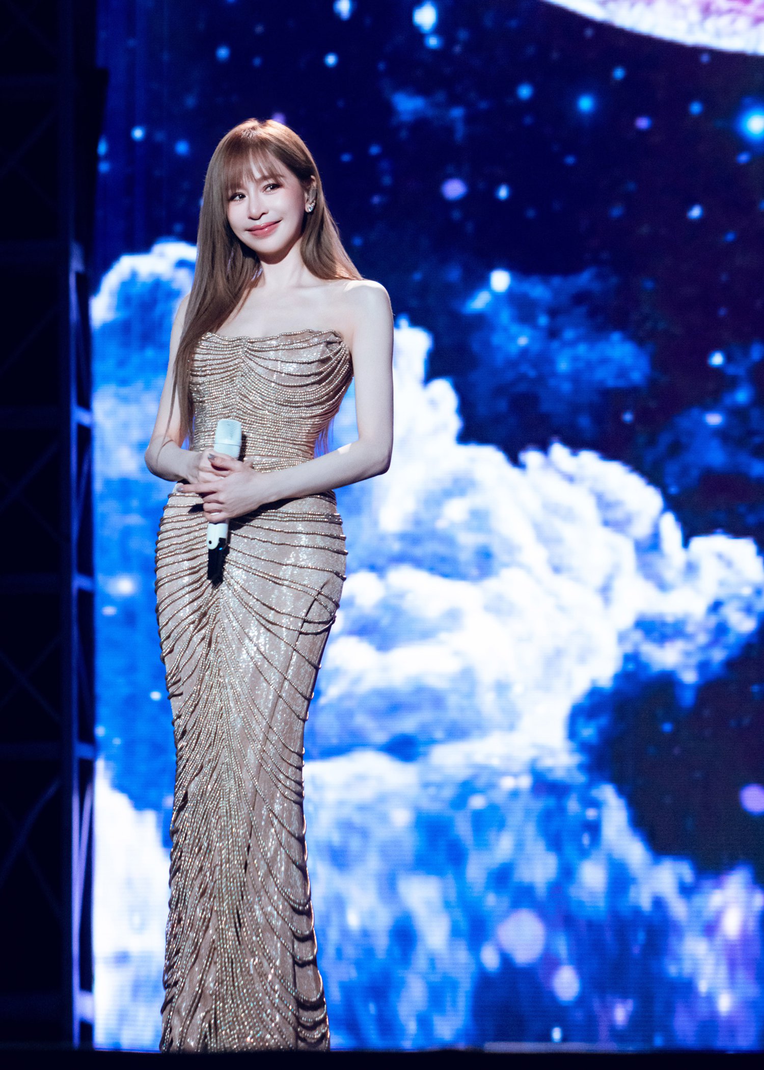 上海站每一日皆诚意满载,王心凌精心呈现十一套全新舞台造型,如同接连开启的华丽盲盒,带来层次丰富的视觉体验。从缀满珠链的金色修身长裙到梦幻层叠的粉色纱裙,从古灵精怪的咖色制服到妩媚摇曳的橙色绒毛短裙,风格在甜心公主与酷飒辣妹之间无缝切换。《Honey》《爱你》《大眠》《第一次爱的人》等经典曲目一出现,合唱声与尖叫声此起彼伏,现场氛围在歌声里被不断推高。