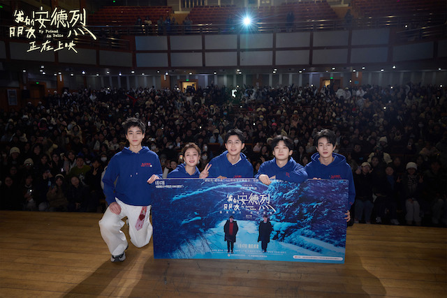 由董子健执导,刘昊然、董子健领衔主演,殷桃特邀出演,韩昊霖、迟兴楷主演,董宝石特别推荐出演,宁理特别邀请出演,雷佳音、章若楠、张宥浩惊喜出演的电影《我的朋友安德烈》已于1月17日正式上映,上映当日,影片主创走进中国传媒大学举办电影首映礼。影片中,李默与安德烈相逢在冬天的东北小城校园里,两个少年在面对成长阵痛的过程中逐渐走近,成为彼此的依靠,多年后又重逢在大雪飘落的冬日,首映当日,北京也恰逢飘起大雪,主创们再回青葱校园与观众们重逢,仿佛也跨越时空真切参与了李默与安德烈的相逢与重逢,见证着一场关于友情的真挚之旅。