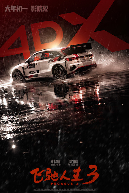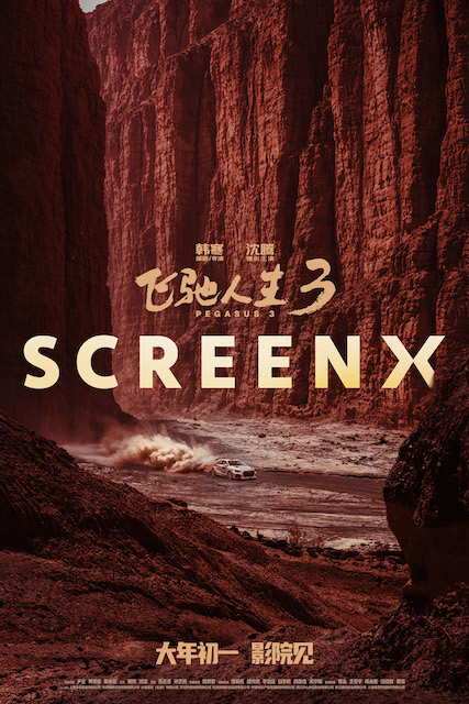 电影《飞驰人生3》剧组为给观众呈现更加震撼的视听冲击,辗转甘孜九龙、德令哈、宁波、上海等多地取景拍摄,无论是海拔4000米以上的川西秘境,还是原始壮阔的青海戈壁,皆化作片中亚洲最难洲际比赛“沐尘100”拉力赛的实景。在编剧兼导演韩寒看来,高海拔地区的自然地形与多变气候不仅给比赛增添了张力,更提供了绝佳的视觉效果,让人沉浸到高山地貌与植被带来的震撼之中。同期发布的IMAX、CINITY、中国巨幕、杜比影院、SCREENX、HDR LED、DTS:X、4DX多款制式海报淋漓尽致地展现了新赛道沿途的震撼场景。IMAX制式海报中,赛车在壮阔的沙地上急速飞驰,车尾卷起滚滚沙尘,拖出长长轨迹,将竞速感拉满之余,亦让人大开眼界。CINITY制式海报聚焦比赛冲线的激烈场面,在经历漫长征途之后,赛车的车况并不完美,但终点已然在望,引擎不熄,斗志不灭。中国巨幕制式海报呈现了神奇的雅丹地貌,天地辽阔壮美,张驰和孙宇强并肩而行,每一步都充满坚定与热血。杜比影院制式海报采用对称构图,一条笔直的赛道在戈壁滩上延伸,张驰驾驶的赛车迎面而来,让人仿佛听到引擎的轰鸣与风的呼啸。SCREENX制式海报中,连绵的深红山脉高耸,极具视觉冲击力,赛车无惧复杂地形,气势磅礴地穿梭其间,临场感十足。HDR LED制式海报中,赛车在原始的砂石路面上疾驰,车尾灯光犹如喷薄而出的尾焰,尽显一往无前的气势。DTS:X制式海报和4DX制式海报则选用了赛车雨中漂移的画面,聚光灯下这辆车就是这条赛道上的主角,车尾摆动溅起雨水,仿佛一场酣畅淋漓的热舞。更大的银幕、更鲜活的色彩、更逼真的声音,多种特效制式将在马年新春带给观众一场身临其境的大银幕飞驰体验!
