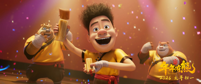 《熊出没》来了,年就来了!今日将于2026年大年初一上映的影片《熊出没·年年有熊》发布新春推广曲《幸福拍手歌》MV,伴随着耳熟能详的国民经典旋律,熊强组合秀出超群舞技,号召大家一同拍手,迎新春、接好运!歌曲欢乐喜庆的新春氛围,瞬间唤醒观众与《熊出没》系列大电影相伴、开心过年的欢乐回忆。作为今年春节档唯一一部讲述“过年“题材的电影,熊强组合将与新朋友年年展开一场中式奇幻碰撞传统年俗文化、奇趣欢乐的闯“年关”之旅,在这个春节为大家带来最纯粹的烟火气与合家欢观影体验。影片将于2026年大年初一正式上映,预售正在火热进行中。