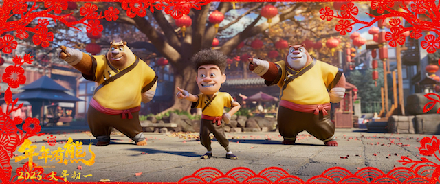 MV还创新融入了别具一格的地域特色小巧思,强哥带头献上了一段天津快板:“夸一夸您这好学业,天天顶呱呱,职位薪水翻着倍,钞票哗啦啦”。歌词中熊二仍惦记着吃到蜂蜜的幸福,还被光头强吐槽“忘不了吃”,贴近生活的歌词编排搭配可爱俏皮的角色互动,让这份新春祝福更加落地,直击人心。多年来,熊强三人组始终在新春佳节与观众共贺团圆,2026年新春,更是即将陪伴观众完整走过十二个生肖年。值此特殊节点,《熊出没》大电影以新作《熊出没·年年有熊》紧扣“过年”这一核心主题,用极具中式奇幻感的视觉呈现,讲述最接地气的暖心故事,为大家传递最浓郁的新春年味。2026大年初一,敬请期待!