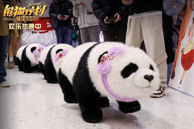 春节假期期间,《熊猫计划之部落奇遇记》的欢乐足迹持续延伸,从2月16日除夕开始,胡胡开启了覆盖全国的“新春送福”之旅,分别抵达苏州、泉州、绵阳、沈阳、石家庄,走进城市地标、商场与市民亲密互动,为各地增添别样年味。2月17日大年初一,送福之旅继续延伸至南京、长春、天津、福州,憨态可掬的胡胡每到一处都能成为人群焦点,现场洋溢着欢乐祥和的节日气氛。