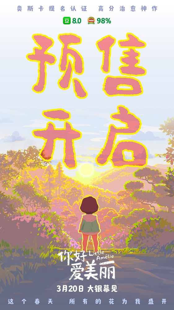第98届奥斯卡金像奖最佳动画长片提名、 同档期新片口碑第一的电影《你好,爱美丽》今日官宣预售开启,并发布预售开启图和导演独家问候视频。3月14日-15日全国二十城开启了限量点映,陈鲁豫和主创的十城连线活动也在点映第一天圆满完成,为影片收获了一大批观众的喜爱与认可。电影由导演迈利斯·瓦拉德、韩良畴共同执导,改编自阿梅莉·诺冬的原著小说《管子的玄思》,讲述了小女孩爱美丽在童真视角下感知世界、经历成长的温暖故事,期待3月20日与大家共赴这场春日之约。