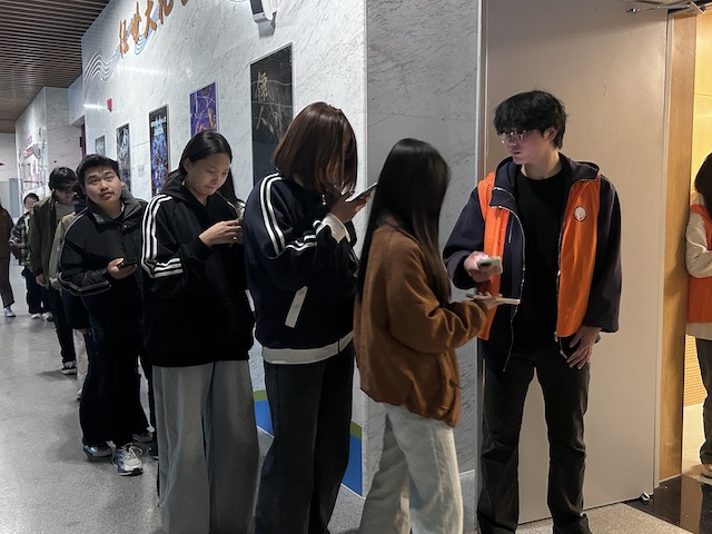 学生们陆续排队入场观影
