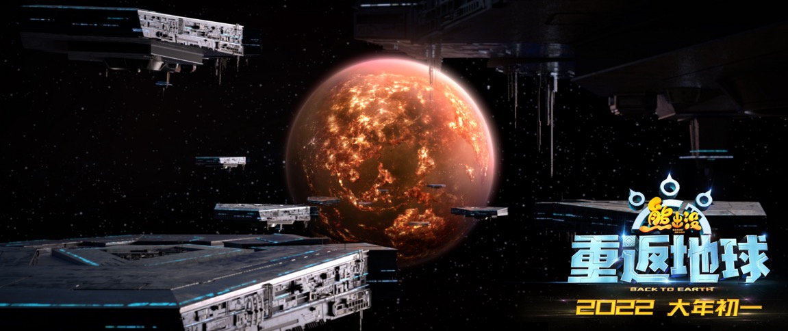 《熊出没·重返地球》同步发布的定档海报令人眼前一亮:“熊强三人组”和外星来客阿布漂浮在浩瀚的星际中望向蔚蓝的地球,让人不自觉好奇故事的发展与走向。