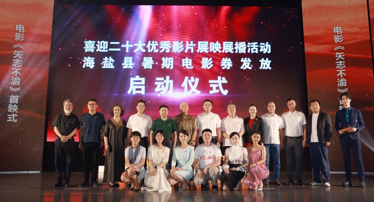 2022年8月7号,喜迎党的二十大优秀影片展映展播暨电影《矢志不渝》首映式在浙江省嘉兴市海盐县海盐大剧院圆满举办。本活动由中共嘉兴市委宣传部指导,中共海盐县纪律检查委员会、中共海盐县委组织部、中共海盐县委宣传部主办,由中共海盐县委直属机关工作委员会、海盐县文学艺术界联合会、海盐县教育局、海盐县文化和广电旅游体育局协办,由浙江万犇影视文化发展有限责任公司、海盐县时代电影有限公司承办。