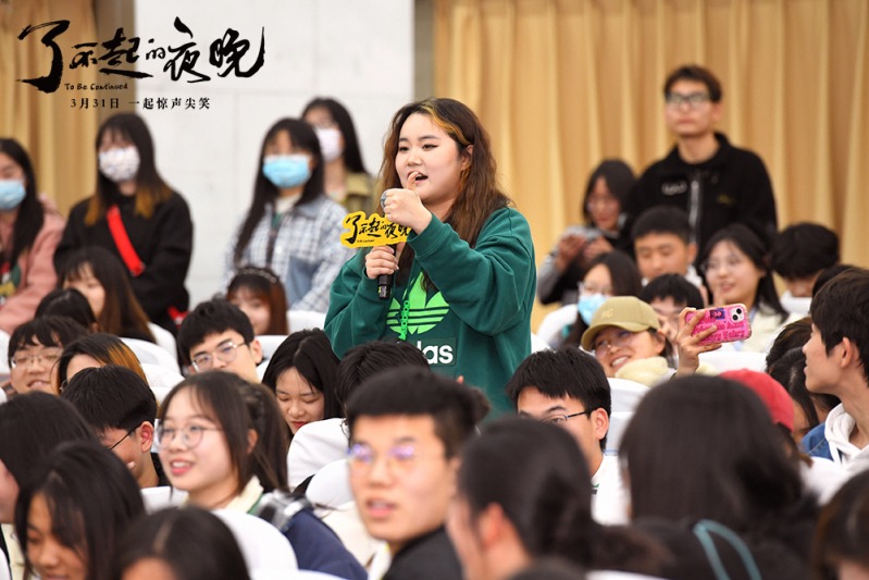 日前,由易小星监制、马凯执导的惊悚喜剧电影《了不起的夜晚》已开启全国“欢乐打卡行”校园路演。3月25日,导演马凯、领衔主演王子璇,主演孔连顺携影片来到“欢乐打卡行”全国校园路演郑州站,与年轻观众一起提前“抱团欢笑”,感受范丞丞、蒋易、蒋龙、王子璇领衔的新喜剧人“欢乐惊宵”。现场学生反应热烈,影片收获诸多好评:“真中真带劲!”、“一会儿惊声尖叫,一会儿哈哈大笑”、“我和我同学一直仰头哈哈哈”、“好看!片尾曲也好好听”、“本单身狗会约喜欢的人去IMAX二刷的”。更有宿管阿姨现场观影后表示:“又精彩又惊喜,你们年轻人的电影我也很喜欢!”