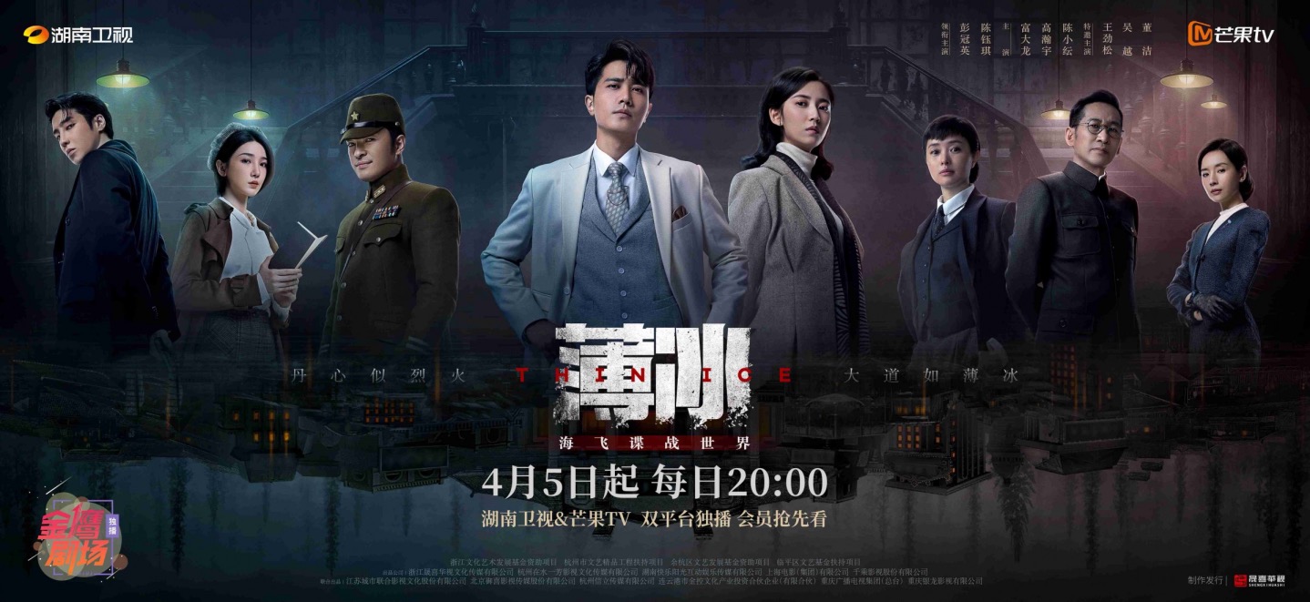 《薄冰》由晟喜华视、在水一芳、芒果TV、上影集团、千乘影视出品,江苏城市联合、御喜影视、信立传媒、连云港金控、重庆广电集团、重庆银龙联合出品。4月5日起,湖南卫视金鹰独播剧场每晚20:00播出,芒果TV全网独播,双城风云,生死一线,奔赴谍战迷局。
