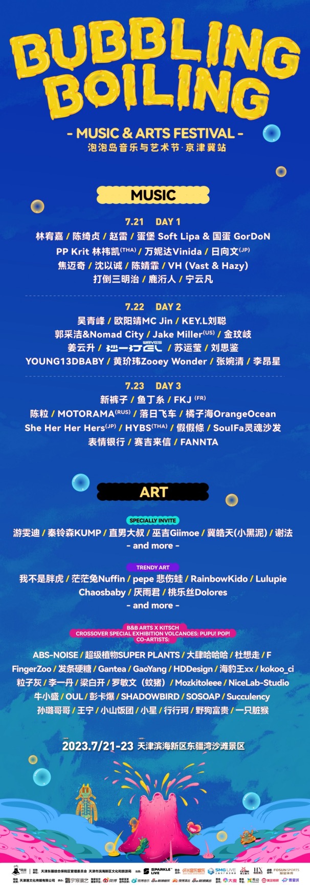 据悉,Bubbling&Boiling 泡泡岛音乐与艺术节为期三天, 将于6月30日11时 在大麦、猫眼、秀动、票星球等平台公开售票,敬请期待!