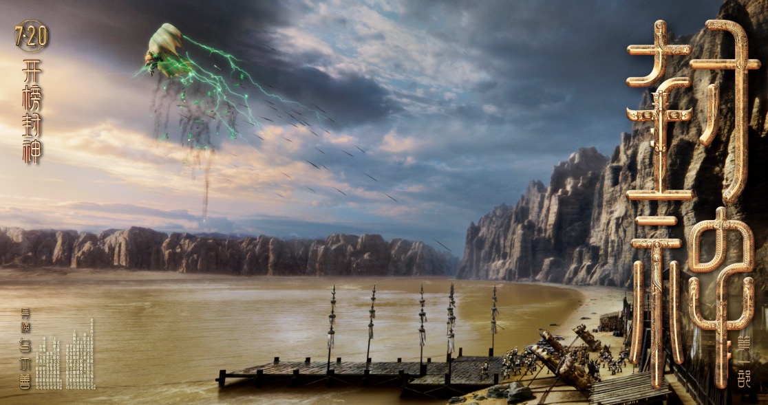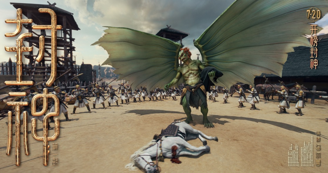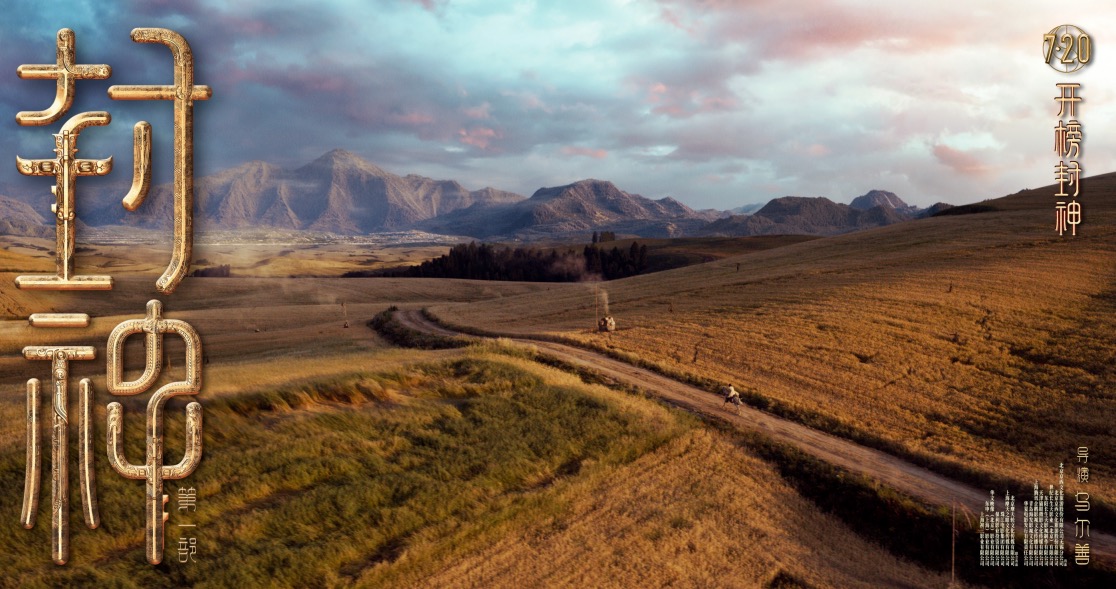 从同期发布的一组九张场景海报中,不难发现属于中国的自然美景,饕餮与姬发坠崖的场景正是中国观众非常熟悉的黄河壶口瀑布,而姬发骑马穿越麦田与远山的场景则是在新疆江布拉克取景。此外,质子旅凯旋的朝歌城、姜子牙杨戬哪吒面对的祭天台、参考青绿山名画《千里江山图》的昆仑仙境、雷震子救父的渡口和城寨、巨浪滔天的金鳌岛、饕餮追逐姬发马队的朝歌城外,均体现出中国自然景观、传统建筑美学与神话想象力的巧妙融合,让封神神话史诗世界更显瑰丽壮观。