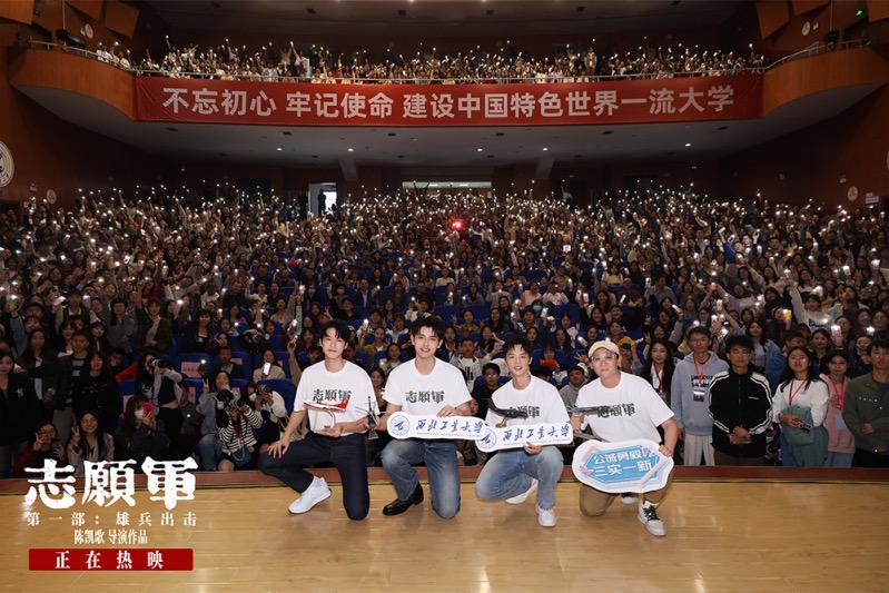 承志愿之志,为祖国铸剑。电影《志愿军:雄兵出击》全国路演进行中,今年是抗美援朝战争胜利70周年,70年前,中华儿女众志成城,以无畏的勇气、坚韧的毅力,换取来之不易的和平。近日,电影主创陈飞宇、魏晨、魏大勋,编剧张珂走进西北工业大学,通过光影搭建起通往70年前的索桥,与朝气蓬勃的西工大学子一同穿越时空长廊,感悟先辈青春本色,共同启迪未来。同时,影片主创也来到了西安当地影城与观众进行了映后交流,影片收获了无数观众的喜爱,主创们也见证了志愿军精神在这座历史名城中被一代代的中国人铭记与传承。
