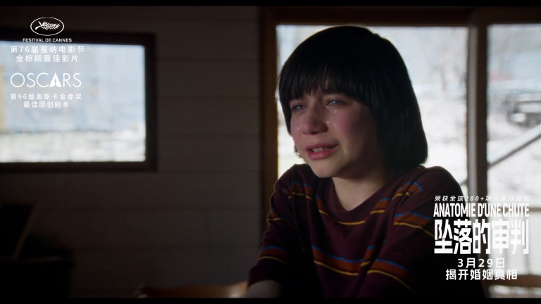 冰天雪地,小木屋前,男主人坠楼而亡,患有视力障碍的孩子成了第一个发现父亲死亡的人。案情疑点重重,法庭将妻子判为最大嫌疑人,夫妻关系成为衡量作案动机的重要因素。于是,孩子小小年纪便要承担起为父母的感情作证的重任。一开始,他坚决认定父母没有吵架。可随着调查深入,法官认为他有包庇母亲的嫌疑,坚称要“毫无保留地揭露现实”。冰冷的审判让孩子倍感无助,只得一次次将过往的伤疤揭开,因巨大的压力泪流满面。庭审这边,一段记录夫妻争吵的录音成为新证,二人声嘶力竭指责对方的过错,直指残酷的婚姻真相。陪审听众为之哗然,媒体添油加醋地描绘着这个家庭的不幸故事。纷纷喧闹过后,孩子重登法庭,回忆起父子间一场富有深意的对话,无奈接受惨痛现实。至此,真相已远远超越案情本身,进入了与每个人息息相关的生活之中,刺破伪装,震撼心灵。
