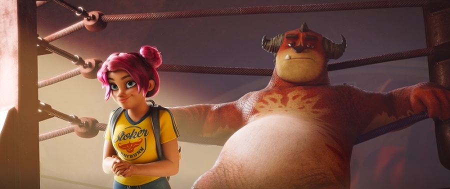 由美国派拉蒙动画出品的最新力作《怪兽训练营》曝光全球首款预告及海报,展现怪兽与人类共同生活的奇妙世界,一场世纪顶级赛事将在这里打响!预告中,怪兽摔跤大赛史上最负盛名的传奇选手毁灭之触再一次霸气登上决赛擂台,魅力难挡。而另一边,梦想成为摔跤教练的女孩温妮正携手废柴怪兽史蒂夫完成一项不可能的特训——成为顶尖摔跤选手,击败毁灭之触。热血二人组能否激发潜力创造奇迹引爆期待。影片将于2021年1月29日北美上映。