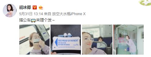 她曾在微博中发出门坐公交剪头发的自拍照,随性的举动宛如邻家小姐姐。
