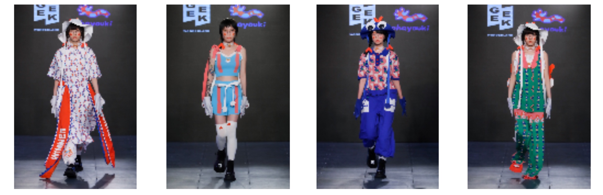在蕾⻁虎先锋时装艺术节Geek Wonderland的⾸首秀推出的四个独⽴立设计师新⽣生品牌分别为: @ohayouki早安琦、@OVERRANGE不不明⻜飞⾏行行物、@LeLevivi·、@TipsyVision幻景。